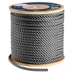 3 kollu, örgülü polyester halat. Bağlama ve demir halatı olarak kullanılabilir. Batar.