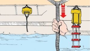 Vardaveleya monte edilir. Denize düşülmesi durumunda koruma kılıfının üzerindeki kayış çekilip merdiven açılarak tekneye tırmanılabilir. Tek başına seyir yapan denizciler için idealdir. Boy (cm) 134