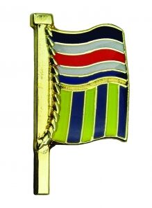 Uluslararası işaret bayrağı kodlarını kullanarak gizli anlamlar gösteren altın kaplama ve mineli rozet.