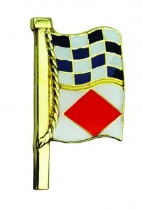 Uluslararası işaret bayrağı kodlarını kullanarak gizli anlamlar gösteren altın kaplama ve mineli rozet.