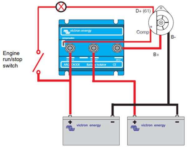 Diyot akü izolatörleri, iki veya daha fazla akünün birbirine bağlanmadan aynı anda tek bir alternatörden şarj edilmesini sağlar. Aksesuar akünün deşarj edilmesi, marş aküsünün deşarj edilmesine yol açmaz. Argo akü izolatörleri, Schottky diyotlar sayesinde düşük voltaj düşüşü özelliği sunar: Düşük akımda voltaj düşüşü yaklaşık 0,3 V’dir ve anma çıkışında ise yaklaşık 0,45 V’dir. Tüm modeller, alternatörün çıkış voltajını hafifçe artırmak için kullanılabilecek bir dengeleme diyotuyla donatılmıştır. Bu özellik, izolatördeki diyotlarda voltaj düşüşünü dengeler.
