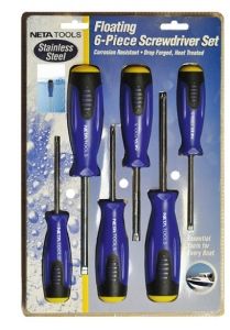 6 parça paslanmaz çelik tornavida seti. Batmaz. 3 adet düz tornavida: 4x75 mm, 5x75 mm, 6x100 mm. 3 adet yıldız tornavida: 0x75 mm, 1x75 mm, 2x100 mm
