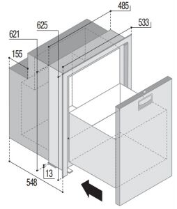 12/24V DC. Çekmeceli Model. Paslanmaz çelik kapı ve çerçeveli.