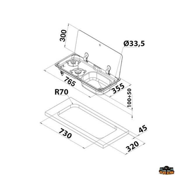 Ölçüler / Dimensions: 765 x 355 x 100+50 mm