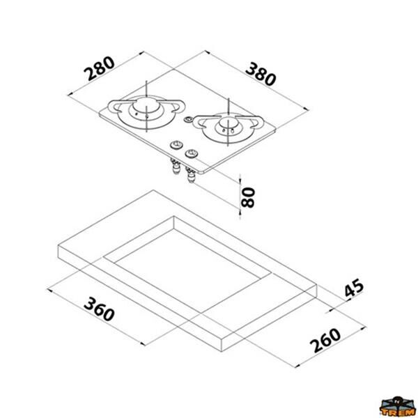 Çizilmeye karşı dayanıklı temperli camdan gömme dikdörtgen ocak, A-SR brülörlü 2 brülörlü gaz beslemesi. Ünitenin üst kısmında kolon tipi tencere tutucu için oturma yeri olarak kullanılan özel bir manşon bulunmaktadır.