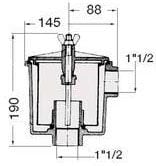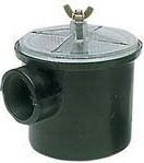 Deniz suyu filtresi, siyah möblen plastik gövdeli ve şeffaf kapaklı.