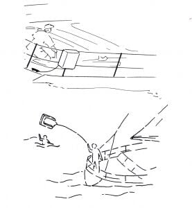Denizden adam kurtarma sistemi. Çantası askılıdır, pulpite kolayca monte edilir. İpi batmaz.