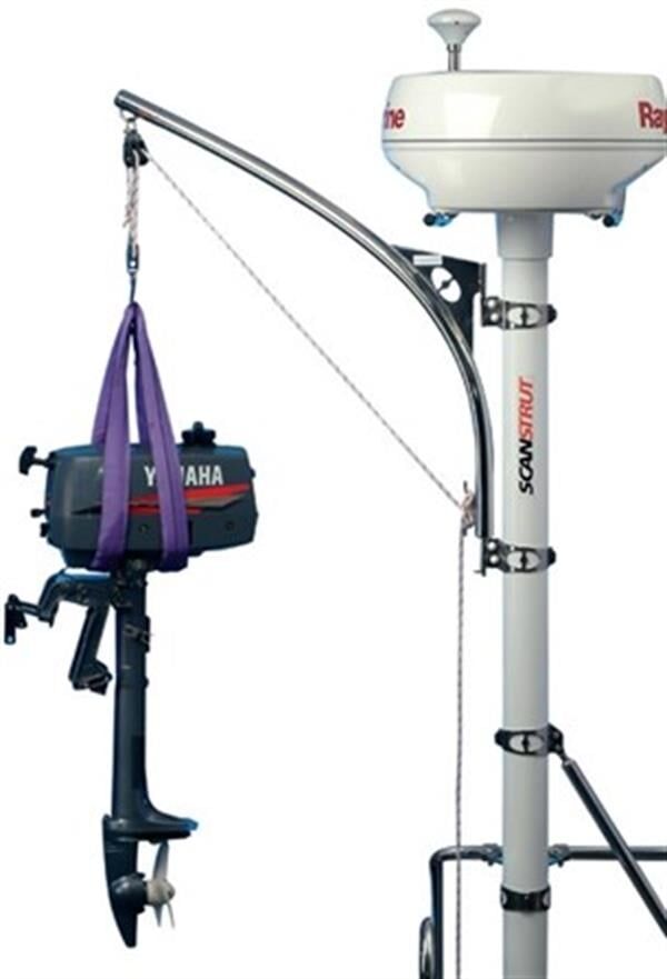 Ağır outboard motor ve bagajınızı güverteye kolayca almak için 270° hareketli vinç. Taşıma kapasitesi 30 kg. 4:1 kazançlı makara sistemi.