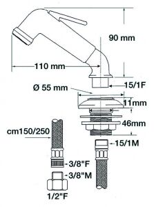 Duş ve yuva. 2.5 metre hortumlu.
