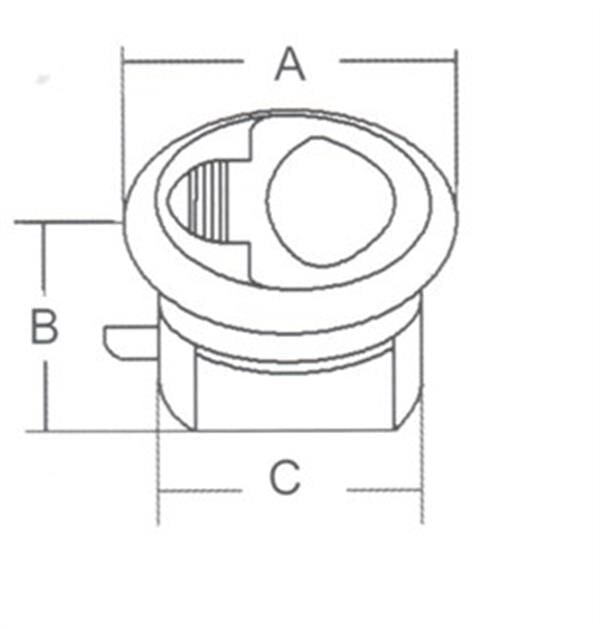 Gömme kulp. Su geçirmez, AISI 316 paslanmaz çelik. Kapaklar için. 3 mm arka halka ile birlikte plastik hazneli. Maksimum 22 mm kapı kalınlığına uygundur.