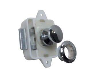 Gömme kulp/kilit.Mini tip. Montajı için 20 mm çapında bir delik açmak ve kilidi iç taraftan vidalamak yeterlidir.16 mm´ye kadar kalınlıktaki panele monte edilebilir.BUTON TİPİ KROMAJ