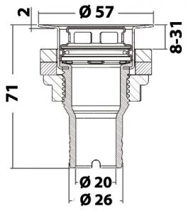 Paslanmaz çelik kafalı gömme su gideri. Güçlendirilmiş asetal fiberden yapılmış gövde. AISI 316 paslanmaz çelik kafa ve çıkarılabilir filtre. Hortum Ø 25 mm.
