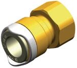 Hızlı bağlantı fitingi, Ø 15 mm hortum için. Cam dolgulu polipropilenTip Dişi adaptör. 1/2 BSP, sarı