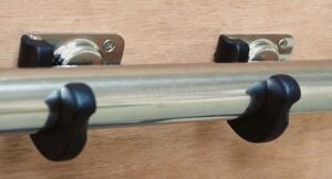Kakıç ve kamış için katlanır tutacak. Paslanmaz çelik ve plastikten imal edilmiştir. Montaj tabanı 55x72mm. Ø 32/35mm kakıç ve kamış için.