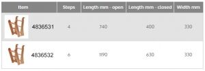Katlanır merdiven, vernikli ahşap. Basamaklar kaymaz bant ile kaplanmıştır. Montaj ekipmanları sarı üzeri kromajdır.BASAMAK SAYISI 4