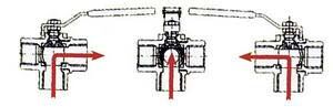 Küresel vana, 3 yollu. Sarı üzeri kromaj. "L" akış.Ø 1/2¨