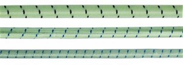 Elastik halat. Kauçuk üzeri polyester örgülü ve beyaz üzeri mavi desenlidir.