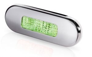 Hella Marine Ledli merdiven lambası. İç mekanlarda veya su geçirmez özelliği sayesinde dış mekanlarda da kullanılabilir. Kapağı paslanmaz çeliktir. UV ışınlarına, darbelere ve titreşime mukavimdir. Multivolt´dur (10-33V DC). Sadece 0.5W enerji tüketir.Led Yeşil