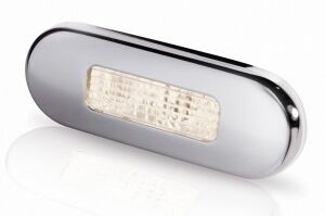 Hella Marine Ledli merdiven lambası. İç mekanlarda veya su geçirmez özelliği sayesinde dış mekanlarda da kullanılabilir. Kapağı paslanmaz çeliktir. UV ışınlarına, darbelere ve titreşime mukavimdir. Multivolt´dur (10-33V DC). Sadece 0.5W enerji tüketir.Led Sıcak Beyaz