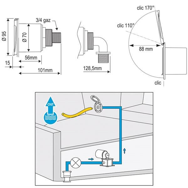 Bir pompa veya genel su tesisatına bağlanan su çıkışı basınçlı deniz suyu üretir. Ayrıca tatlı su içinde son derece uygundur.