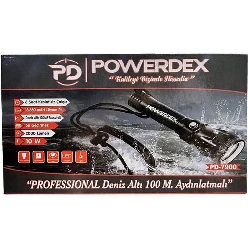 Powerdex PD-7900 Şarjlı Su Altı Dalış El Feneri 10W 2000 Lümen