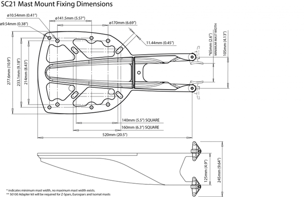 Sabit direk platformları. 2kW ve 4kW radome antenler için uygundur. Yelkenli teknelerde radar montajı için en çok tercih edilen modeldir. Beyaz polyester toz boyalıdır. Tüm üreticilerin antenleriyle uyumludur. Direğe giriş için su geçirmez kablo geçişi bulunur. Plastik rondela sistemi boyayı korur.