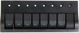 Siyah polikarbonat çerçeveli. Ledli anahtarlar ve resetlenebilir otomatik sigortalarla donatılmıştır.