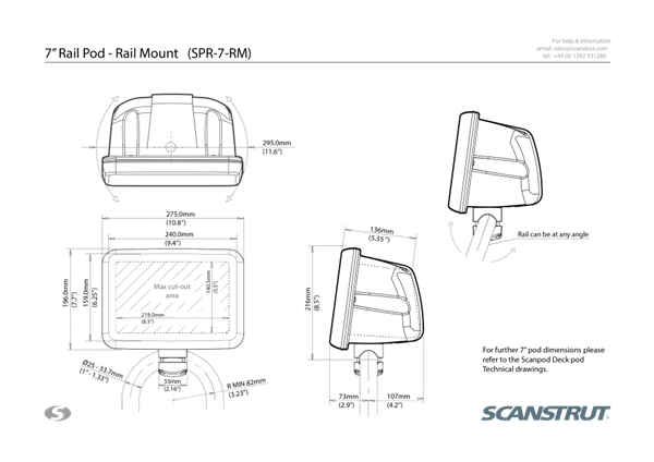 SPR-7-RM 7" EKRAN İÇİN BEYAZ POD. RAYA MONTAJ