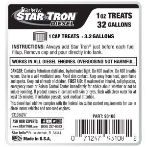 Star *Tron mazot katkısı. 473ml. Zehirli kimyasal kullanmaksızın mantar ve yosun oluşumunu engeller. Tüm emisyonları azaltır, dumanı partiküle eder. Mazottaki setanın daha verimli kullanılmasını sağlar, tork ve performansı arttırır. Yakıt oksidasyonunu önler ve yakıt kimyasının bozulmasını mimimum 18 ay engeller. Isıtıcılar, enjektörler ve egzoz aksamında karbon oluşumunu önler.
