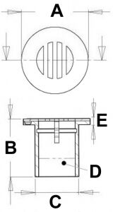 AISI 316 paslanmaz çelik. Izgaralı kapağı, vidaları gizleyerek şık bir görünüm sağlar. A (mm) 58