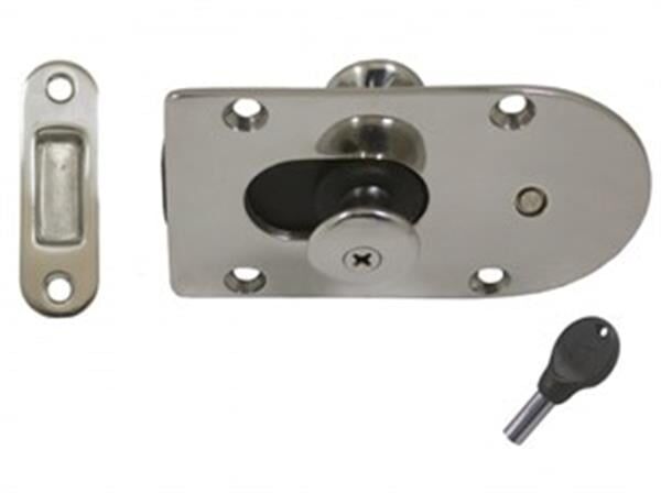 Sürgü Kilit. AISI 316 paslanmaz çelik. 12 mm kapılar için uygundur. İçerden sürgülü, dışarıdan anahtarla kilitleme sistemi vardır.