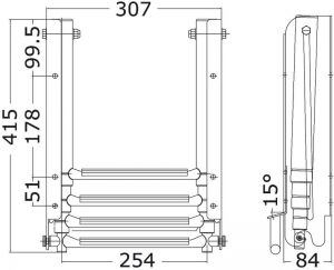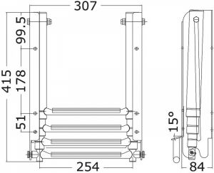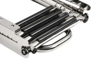 Platformun altına montaj kayar merdiven. Tutamaklı. Titreşim önleme kilitli. AISI 316 paslanmaz çelik.
