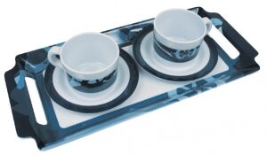 İki kişilik küçük tepsili, 2 fincan ve tabaklarından oluşan set.