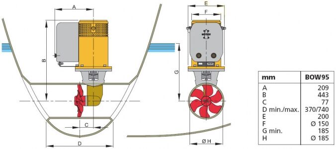 Vetus baş manevra pervanesi, 95 kgf, 12V Volt 12V