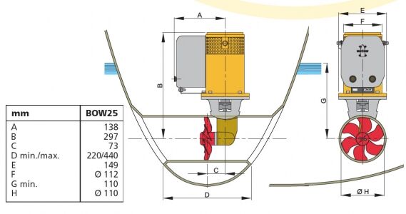 Vetus baş manevra pervanesi, 25 kgf, 12VVolt 12V