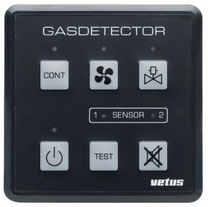 Vetus Gaz dedektörü. Model GD1000. Propan, butan, metan, etanol ve hidrojen gibi yanıcı gazlara, karbonmonokside ve elbette tüpgaz içeriğindeki yanıcı gazlara duyarlıdır.