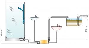 • Duş veya lavabodan giriş bağlantıları: Ø 32 veya 40 mm