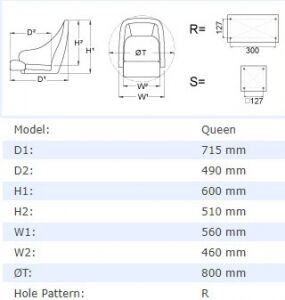 Vetus koltuk, model Queen