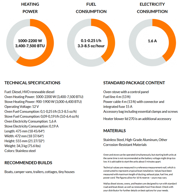 87D, diesel fırın ve ocak kombinasyonudur. Kontrol panelleri üzerinde olan 87D nin kullanımı son derece kolaydır. Gimbalları sayesinde sallantılardan etkilenmez. 12V Standart pakete, 4m güç kablosu, ve 4m yakıt hortumu filtresi birlikte dahildir.